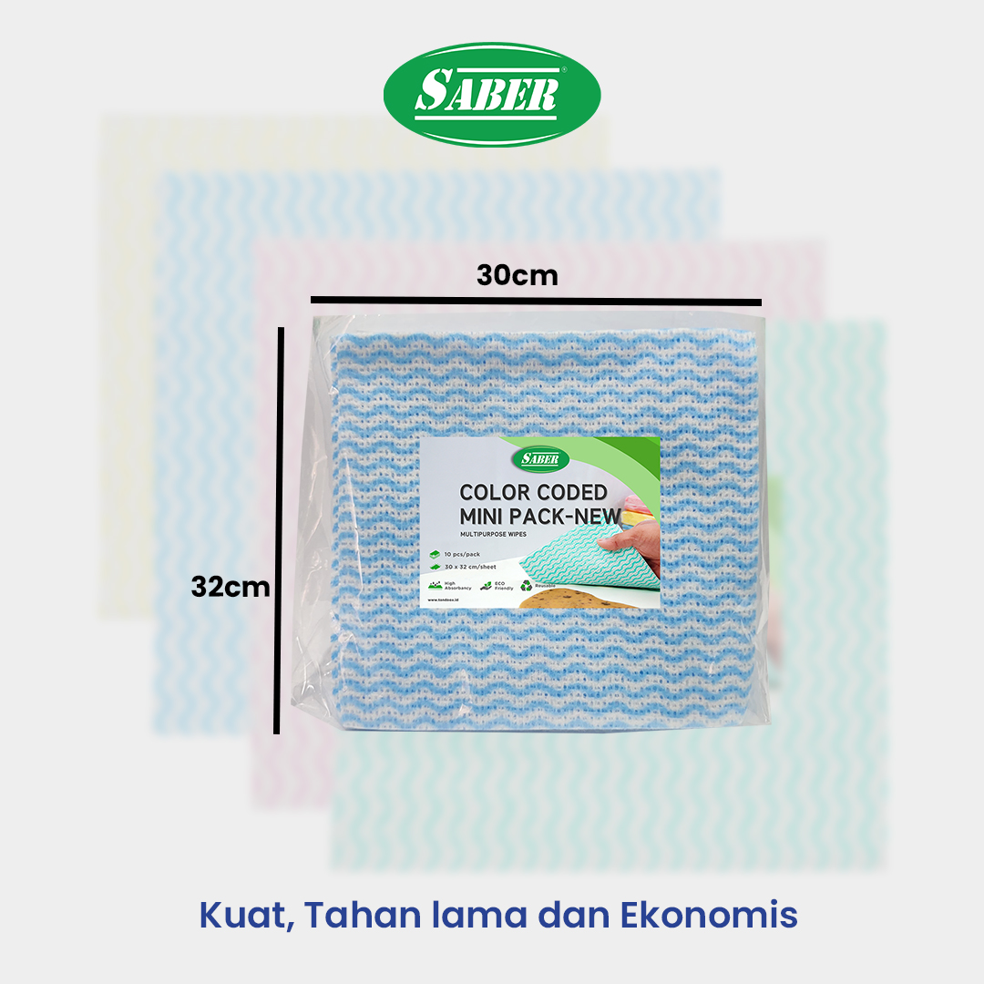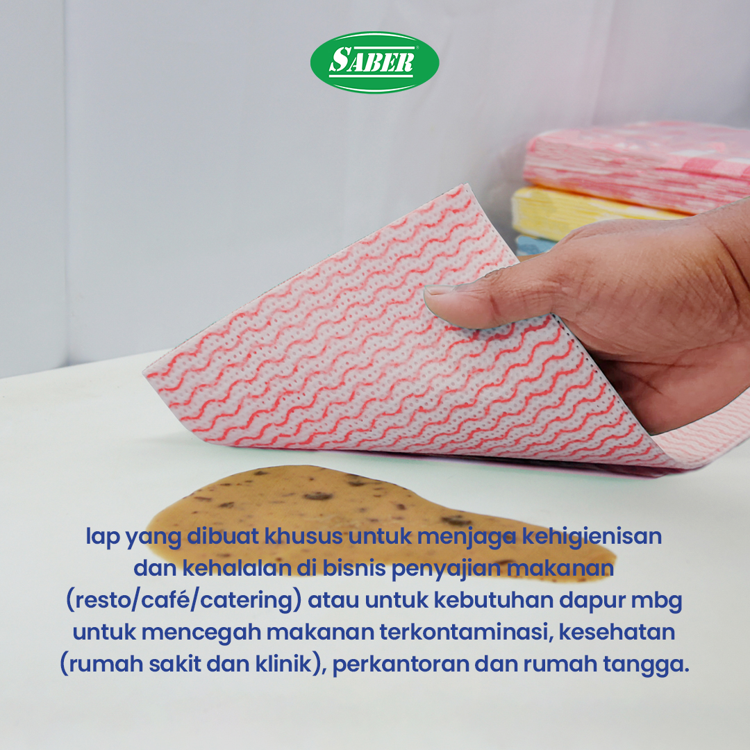 SABER Color Coded Wipes adalah lap yang dibuat khusus untuk menjaga kehigienisan dan kehalalan di bisnis penyajian makanan (resto/café/catering) atau untuk kebutuhan dapur mbg untuk mencegah makanan terkontaminasi, kesehatan (rumah sakit dan klinik), perkantoran dan rumah tangga.