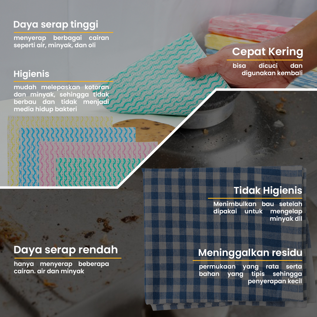 3. Daya serap tinggi untuk membersihkan tumpahan cairan, minyak tanpa meninggalkan residu.