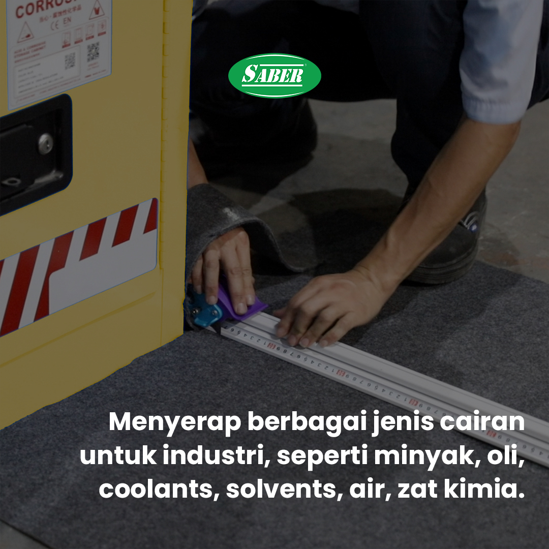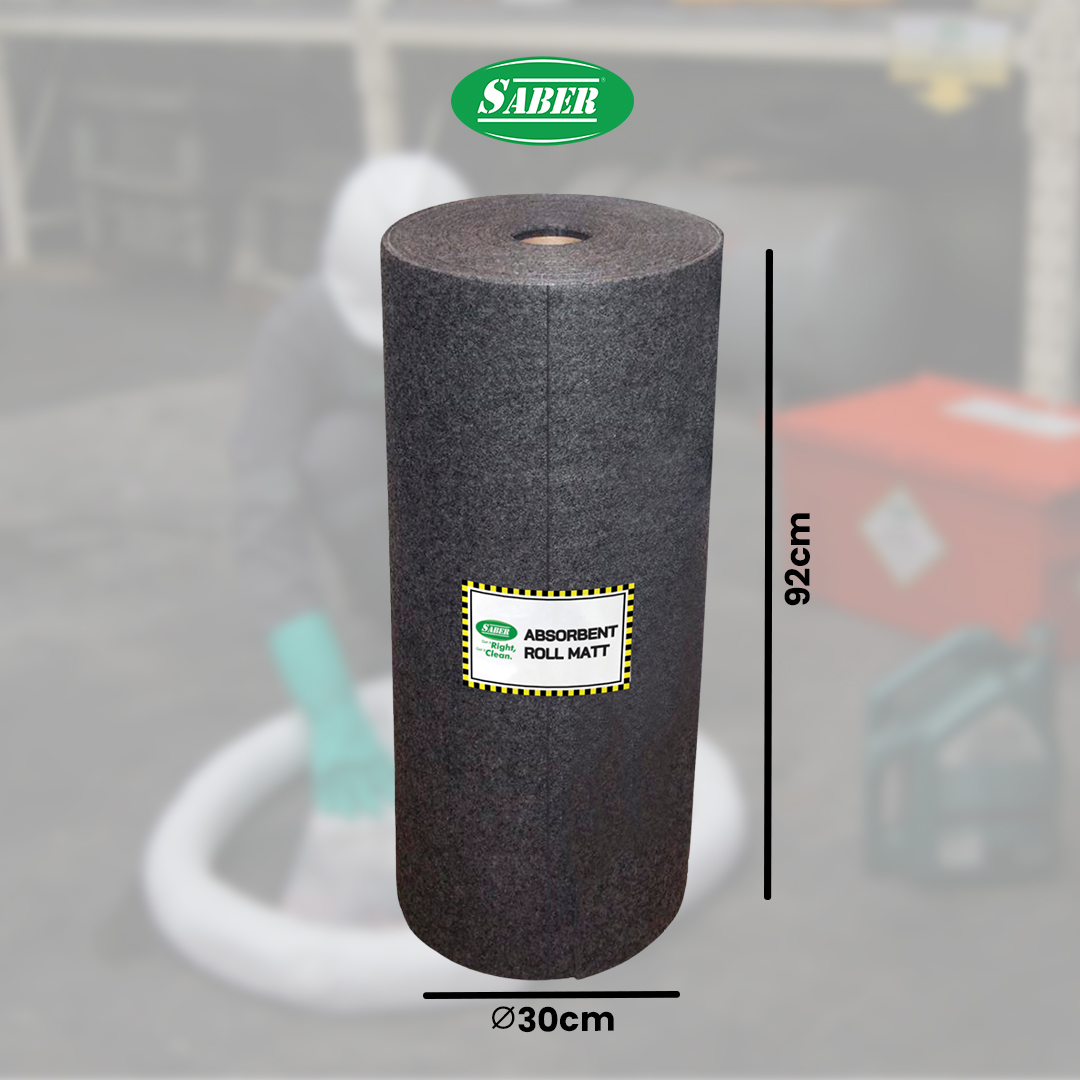 SABER Heavy Absorbent Roll Mat adalah mat dengan format roll gulungan yang terbuat dari multi-lapis polypropylene. Daya serap yang tinggi hingga 50 liter bertujuan untuk mencegah terjadinya kebocoran yang mengarah ke area lantai sehingga menjadi alas yang tepat untuk bekerja serta dapat menyerap berbagai jenis cairan untuk industri, seperti minyak, oli, coolants, solvents, air, zat kimia dan berbagai jenis cairan lainnya.