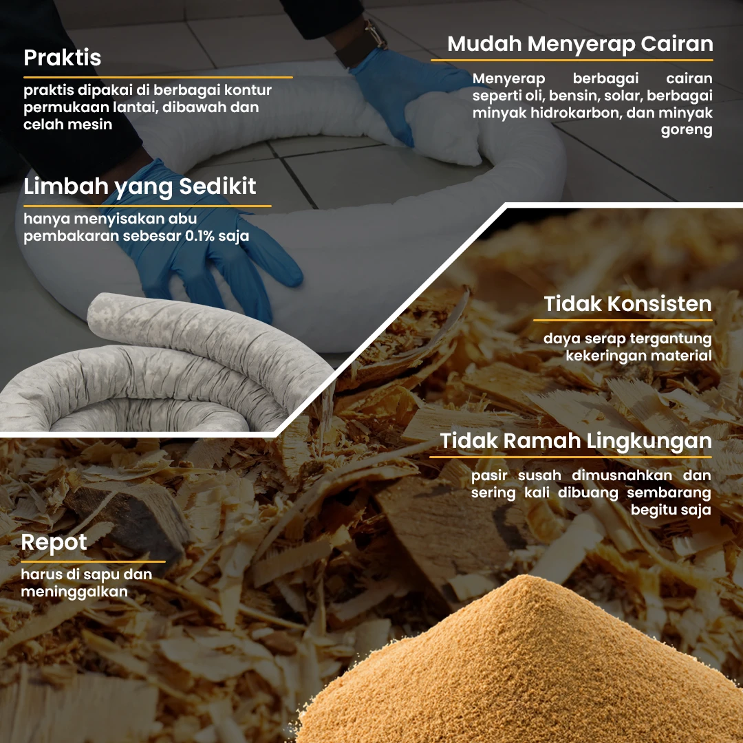 Benefit:1. Menahan dan mengurung tumpahan agar tidak menyebar, ideal untuk kondisi darurat.