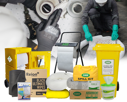 Selain Wipes dan Absorbents, SABER juga mempunyai beberapa produk unggulan seperti Spill Kit, Spill Pallet & Deck.