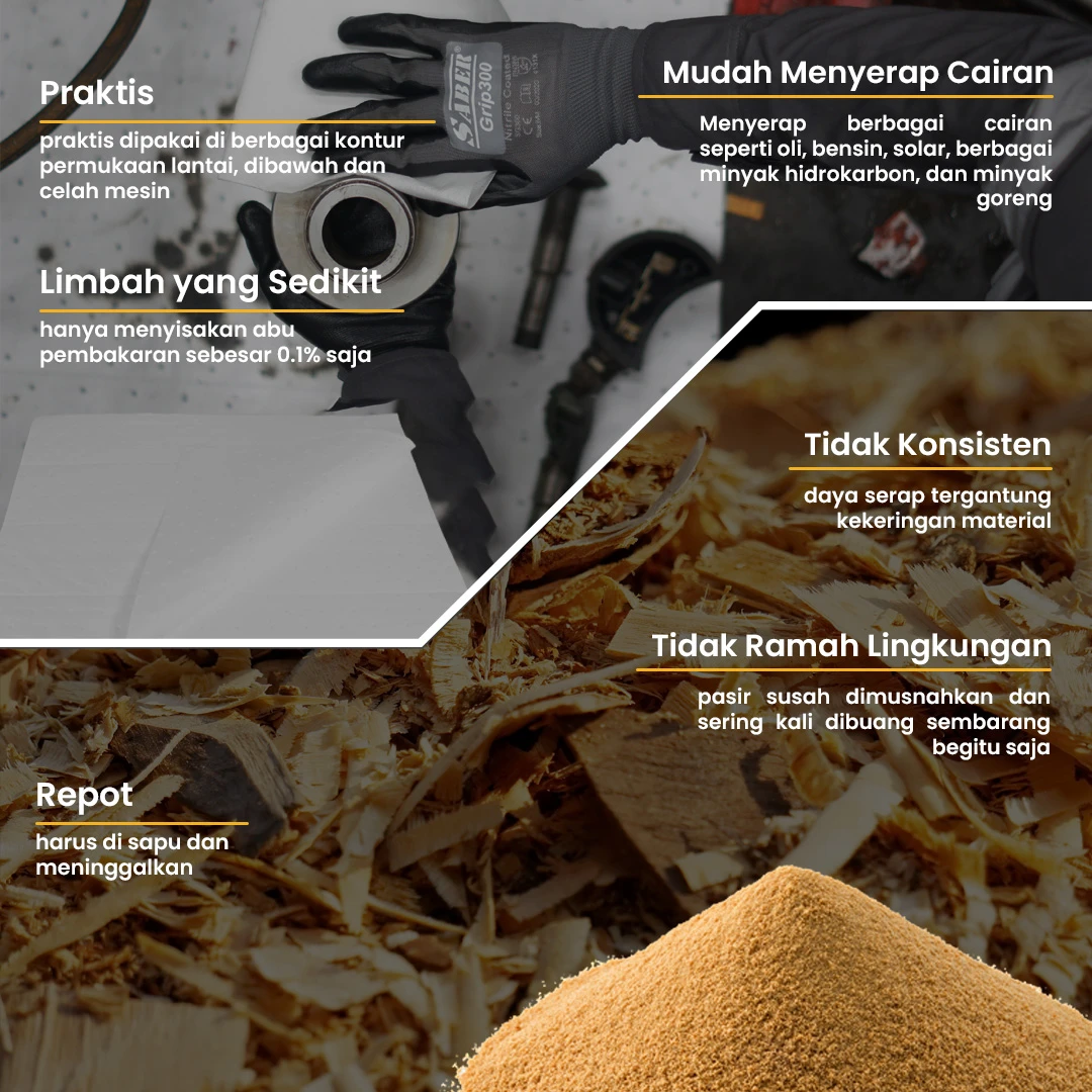 4. Pilihan ideal pengganti pasir/serbuk/gergaji, membuat area kerja lebih bersih dan tidak berdebu.